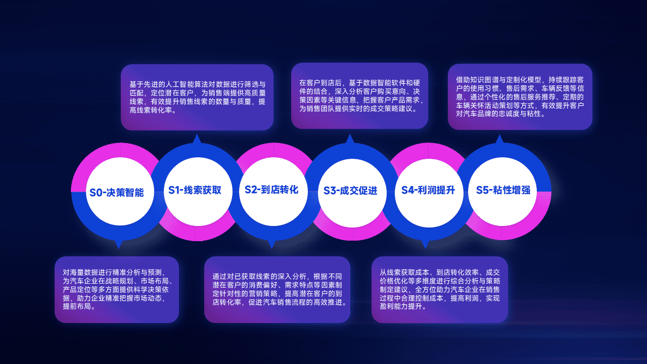 通过拓宽潜在客户来源、、优化线索分配并提高到店转化率,,,以增强销售效率。。同时,,,,利用线索数据不断优化分析模型,,,,有效提升转化率,,扩大营销影响力。。。
